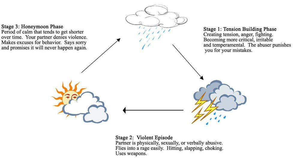 Not all domestic violence relationships are abusive all the time. We were really good at working the cycle. We had 3-5 days of honeymoon, 1-2 weeks of tension building, and then the boom. The boom was bad. The boom was scary. The boom was my hell on this earth.