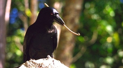 The most famous reports of birds using tools is crows who drop down seeds onto the road, where they will be run over by cars so the crow can eat the nut insides. This is not the only tool crows can use. Take this species: the new Caledonian crow (Corvus moneduloides). These crows are known to use twigs for purposes that are meant for more than just eating. Like the woodpecker finch, twigs are sometimes used in order to acquire food, and the new Caledonian crows also use those twigs to poke at foreign and random objects, with a different attitude towards them than when they are searching for food. It is believed that this might be a way to help these birds understand whether things are inanimate or not, or to help them understand if an object is a threat.