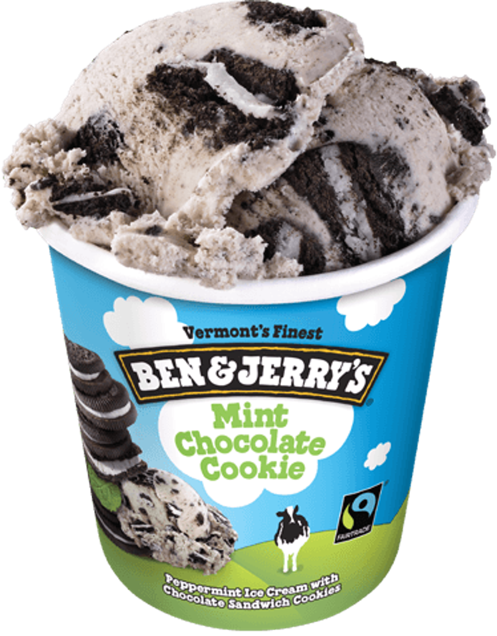 Peppermint ice cream with fudge brownies and fudge swirls.