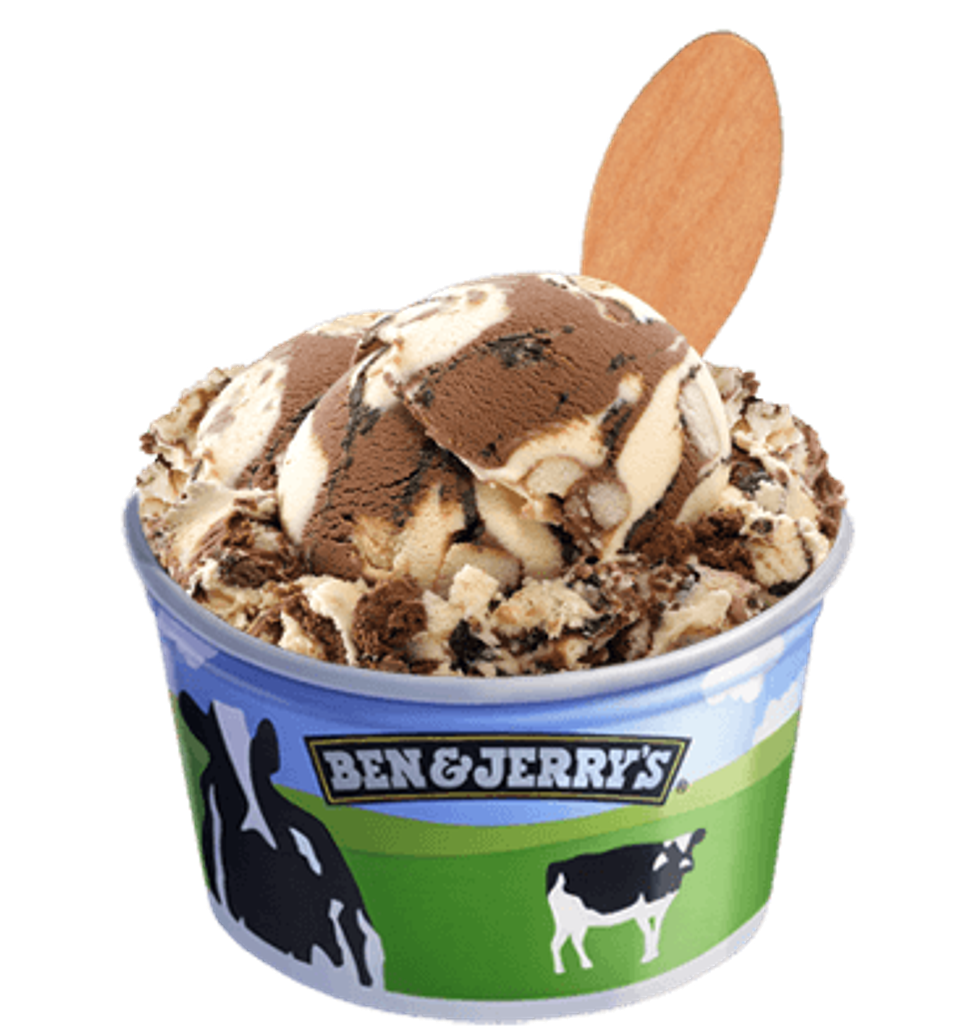 Chocolate and vanilla ice creams mixed with peanut butter cups, fudge-covered toffee pieces, white chocolate chunks and fudge-covered almonds.