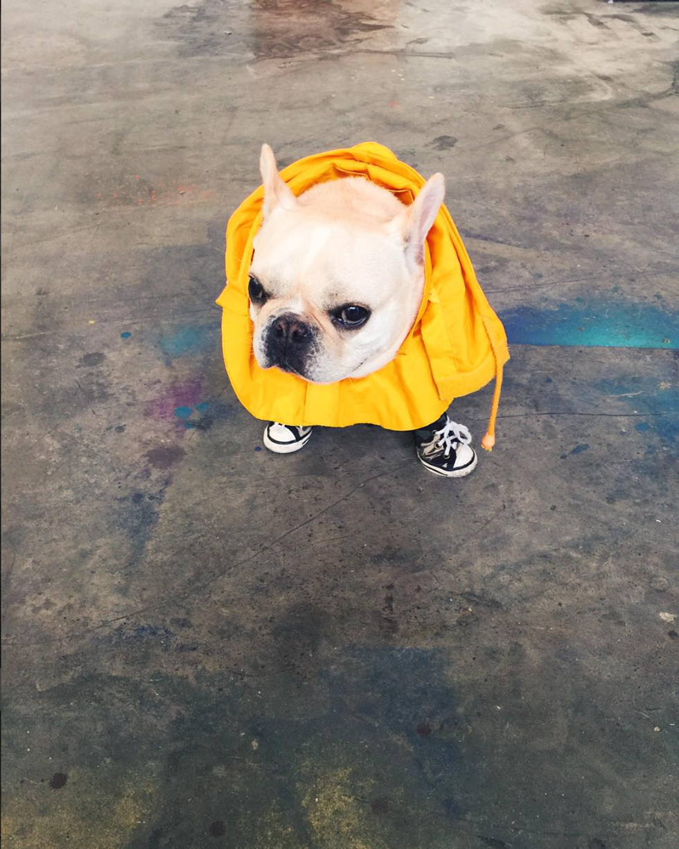 I mean, it's a dog in a raincoat and converse. What more could we want?