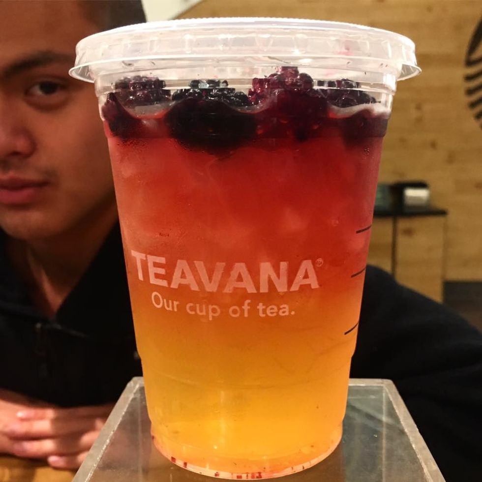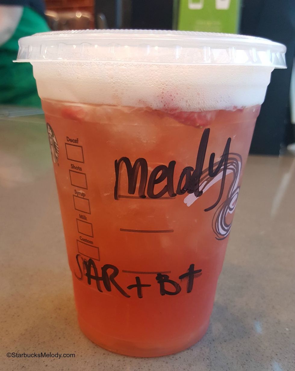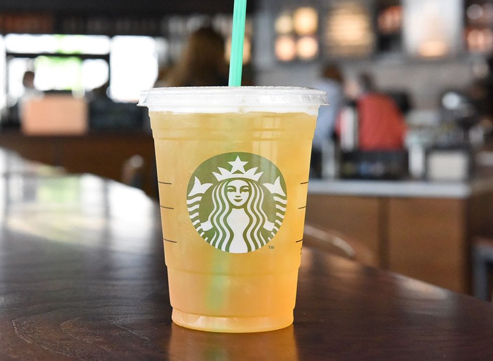 3. Passion tea lemonade sweetened with strawberry juice and the classic syrup topped with orange mango juice (known on the Starbucks Secret Menu as the “Lava Flow”).