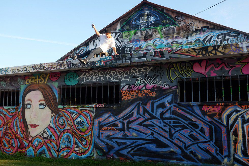 This spot is one of my favorite locations to do a photoshoot. It is an abandoned warehouse where local artists get to leave a temporary mark. I say temporary because every time I come there are new pieces of art. I'm grateful that my homie Mark was my subject for this photoshoot because he was down to climb up a barbwire fence to get on the roof for this shot. I was able to get a lot of great photos inside the warehouse as well as outside.