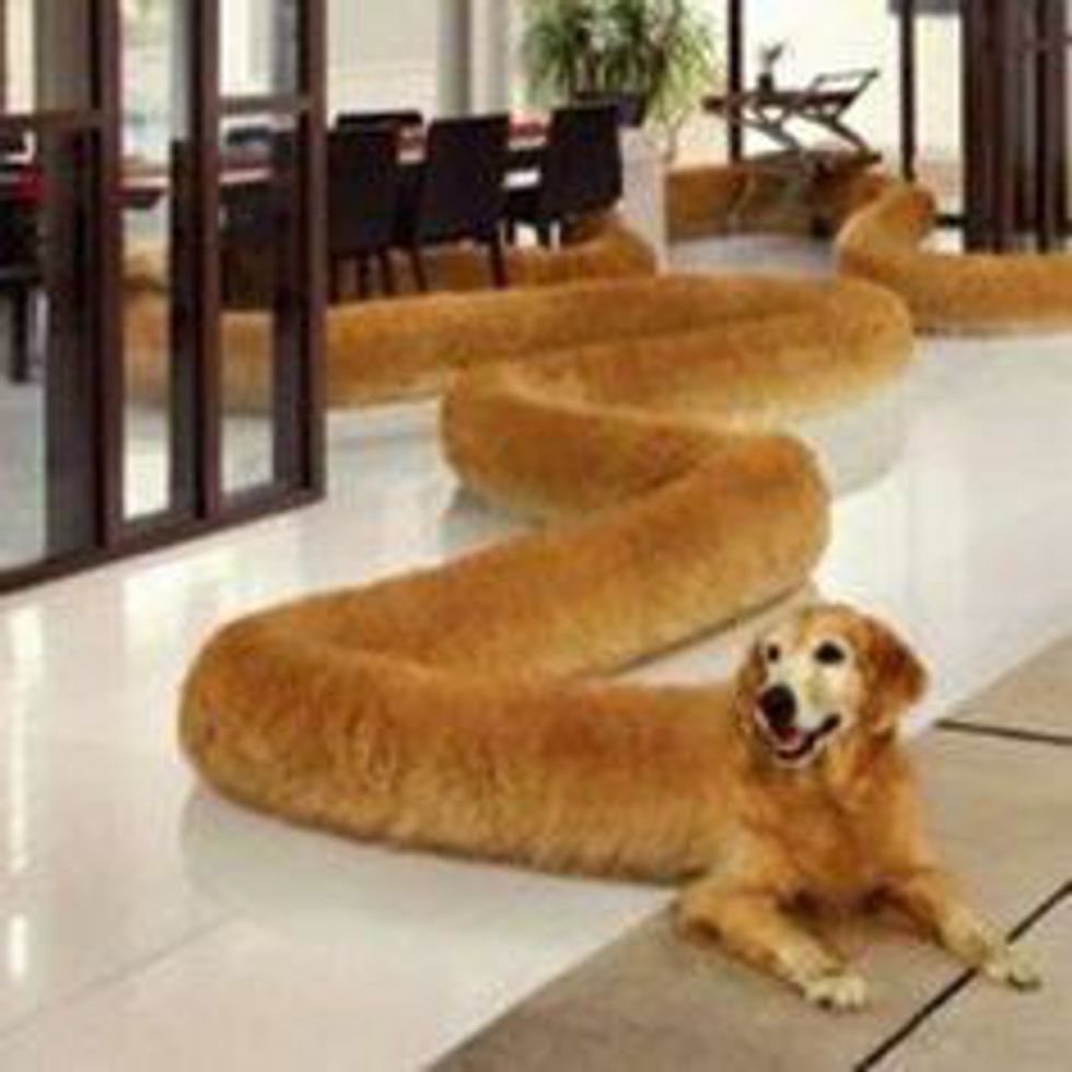 Are you tired of your dog walking away while your trying to play with her fur? well now you'll never have to worry about that again! Say hello to the Longo Doggo! With the Longo Doggo, all you need to do is walk to every place in the house that you like to rest, and call your doggo to your side. You'll never have to worry about him walking away again, because you'll always be able to reach him! Just remember, watch where you step, because that carpet may actually be a part of your dog!