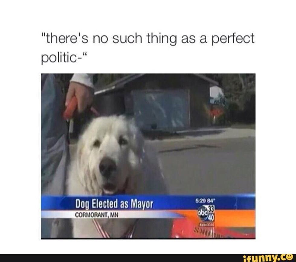 Are you tired of cats being in charge of your government? Well now you can change that with Mayor Doggo! Mayor Doggo is a dog who will rewrite your entire personal constitution to be more focused on the important things, like bones. Vote for Mayor Doggo today!