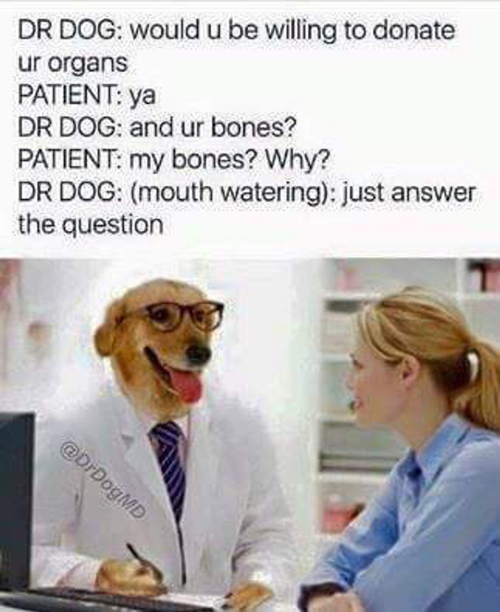 If you are suffering from an illness and are unable to receive the attention you need, call Doctor Doggo. For a small fee of a few unnecessary bones*, Doctor Doggo will "treat" your every need! Call now and receive a free consultation!