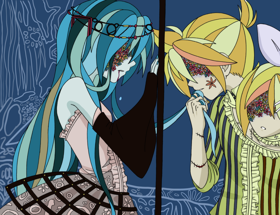 Hitobashira Alice (literally translated to Alice of Human Sacrifice) is a dark retelling of Lewis Carrol's classic novel Alice's Adventures in Wonderland. The story acts as a sort of prequel to the novel and describes how a dream lures various "Alice's" into it. I find it interesting to look for the comparisons between the characters of this song, and those from the novel.