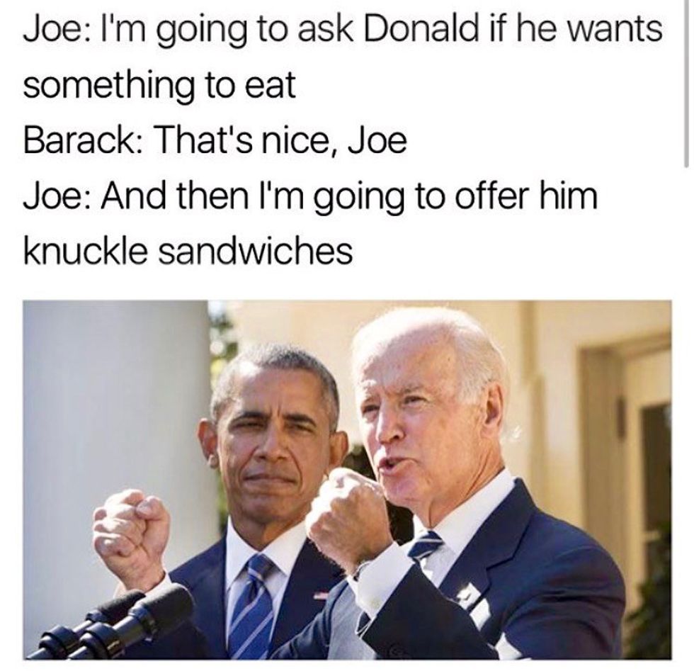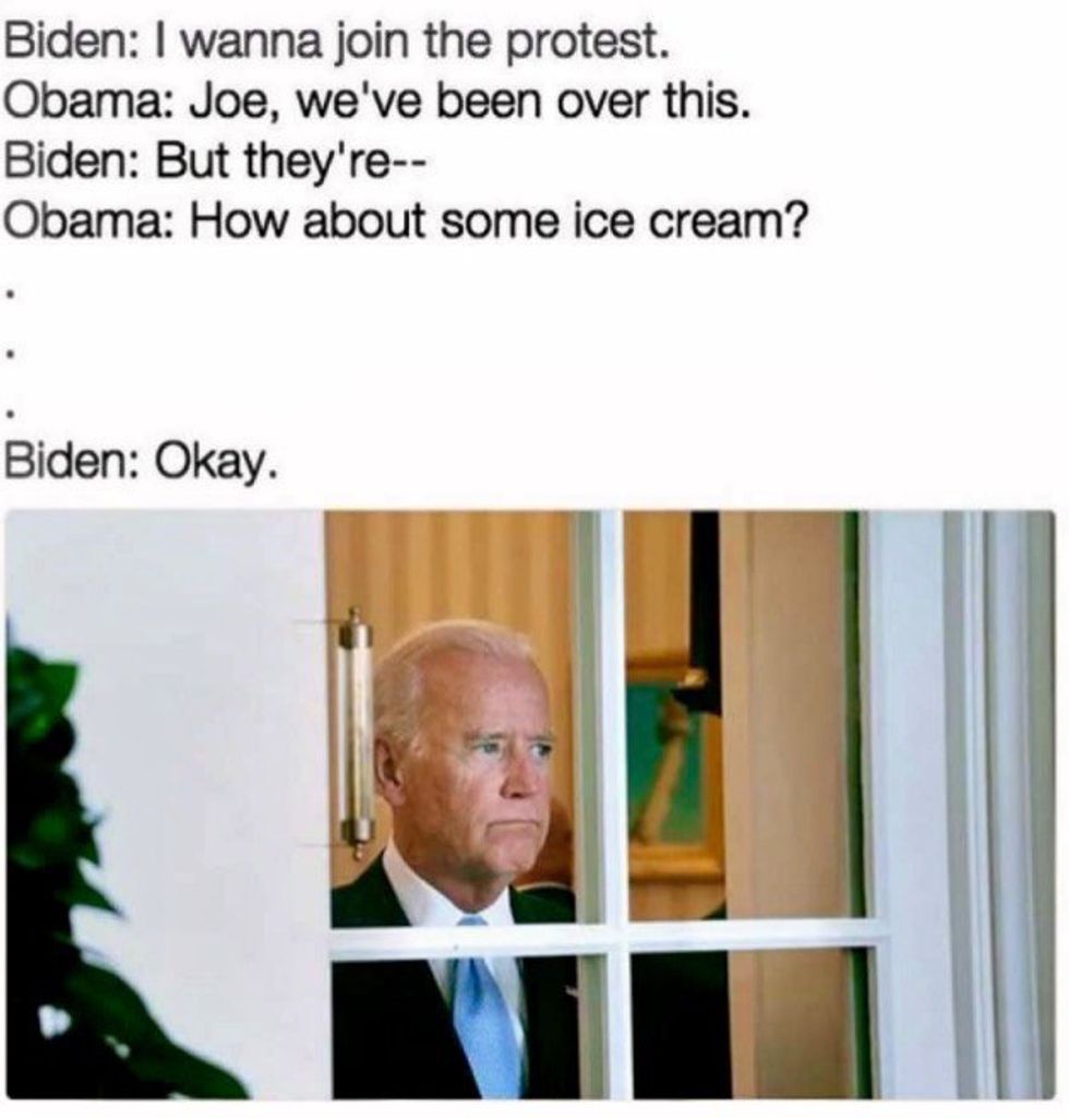 1. I love this meme because it shows how close Biden and Obama are, so much that he could never imagine being abandoned by Obama with the new administration.