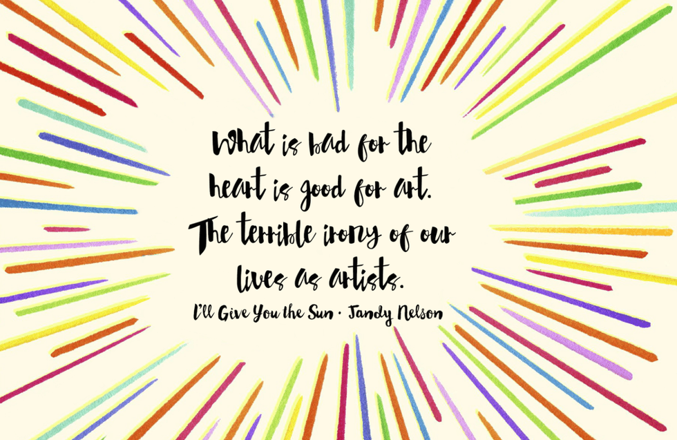 Jandy Nelson's "I'll Give You the Sun," has the power to make me laugh, cry, and think all on the same page. The story switches off between the narrators Jude and Noah, who are twins that happen to be best friends until a life altering moment splits them in half. The situations the twins go through are so real and raw and it made me realize to stop wasting my time on people or things that are negative, and to always do the things I'm passionate about.