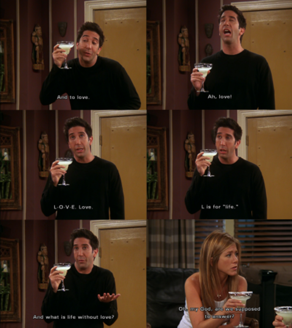 If you know anything about me, it's that I love Friends. I've seen every single episode of the entire show at least twice and others that are my favorite, I've seen way too many times to count on both hands. Since Friends is pretty much the only thing keeping me sane during finals week, here's a list of my top 10 favorite scenes and episodes of one of the greatest shows ever made.