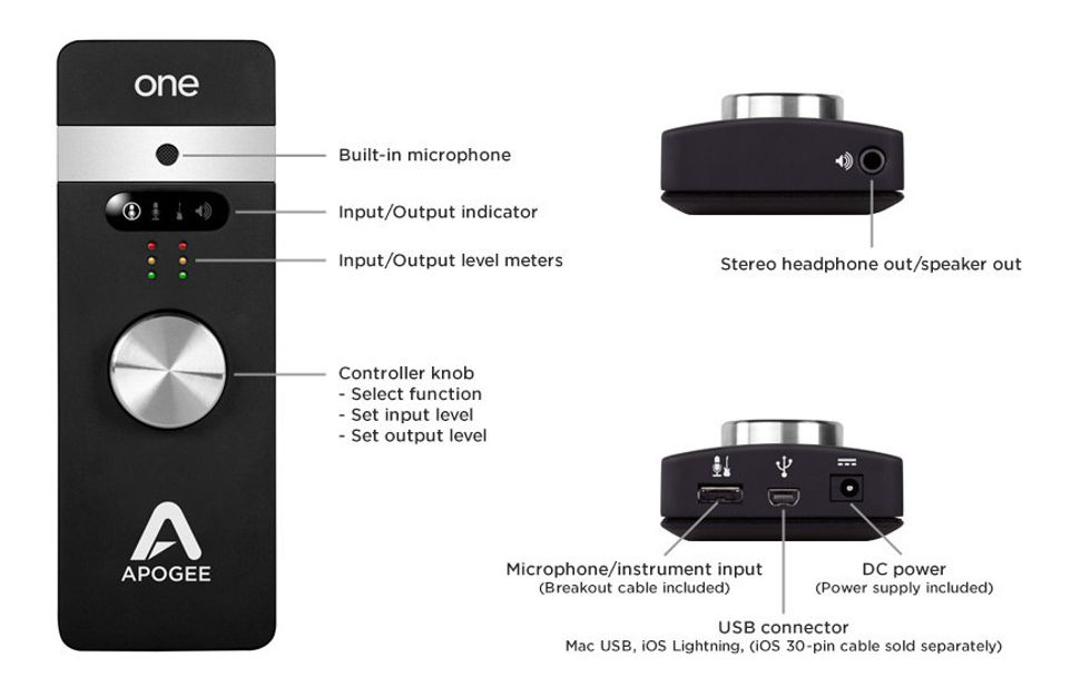 I got this interface for Christmas two years ago and have never looked back! Apogee One is a well designed audio interface that allows you to play and record guitar, keyboard, and vocals. When I play guitar, I plug into the instrument input and go crazy with the built in amps for Garageband (my favorite is Old School Punk). I do some recording and some playing for fun with some amazing sounding amps. Even if you don't want to record, it is a small and efficient interface for travel so you can have a to-go amp on your laptop if you want to. It is compatible with other music softwares, and using it only requires the free download of its control panel application. All cables and adaptors (except headphones) are included, and it is definitely an audio/instrument interface worth the price!