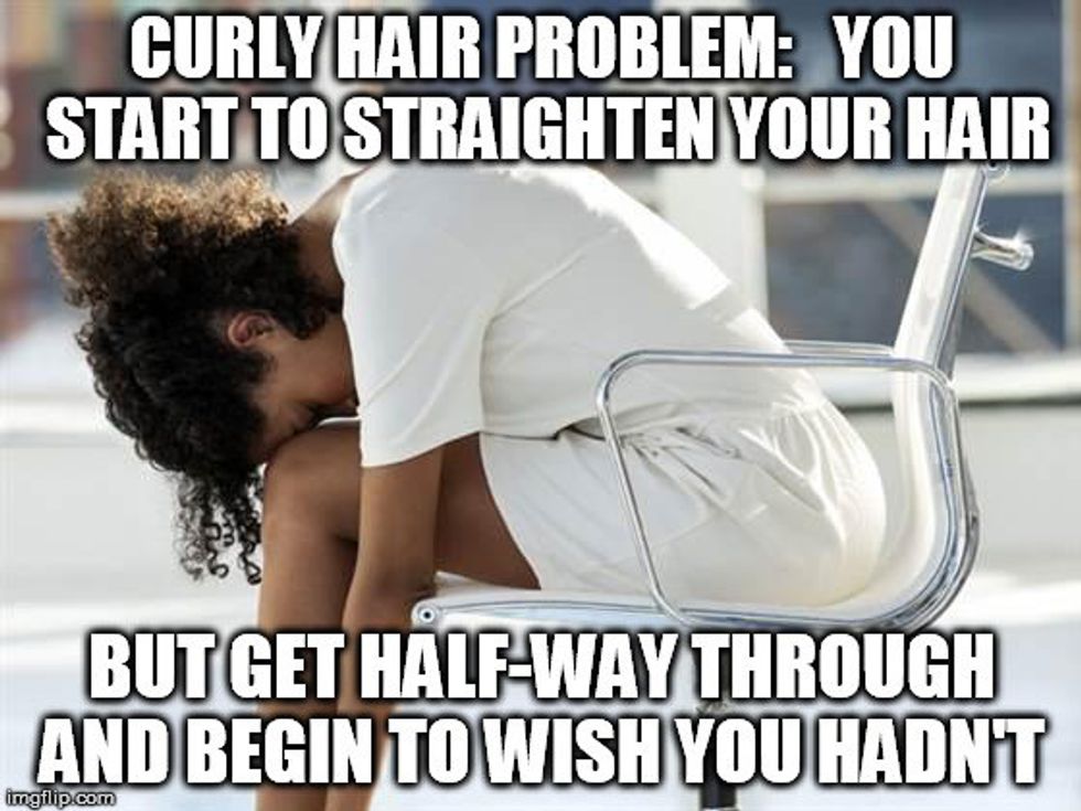 When it comes to breaking out the heat protectant and the flat irons, the curly cue women community are like trained assassins when taking the kink out of our hair. However, unlike those with semi-straight or wavy hair who take 20-30 minutes top to finish the job, a woman with curly hair can take 1-2 and a half hours--depending on the severity of the curls. And by the time you're half way done with this excruciatingly long process, you just want to quit and try to start a globe wide trend of rocking the half curly half straight eletrocuted look...or you'll manage to finish the job and the weather will just ruin all of your hard work and you'll sweat it out the second you step outside.