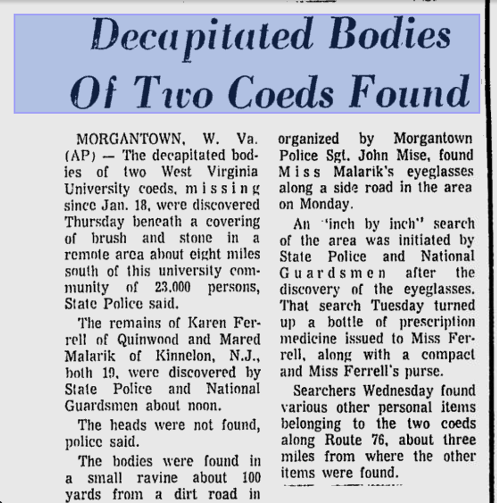 This area is known for a much more recent murder mystery that took place in the 1970's. Two students were hitchhiking and were never seen again until their decapitated bodies were found. The murder has never been solved, but when you turn down Dead Man Curve, many claim to have seen the students running around looking for their heads.
