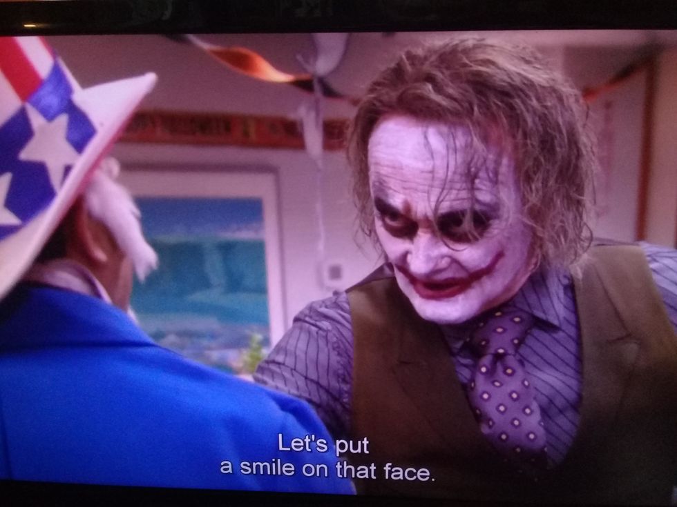 Lego Batman's Joker wasn't quite as scary as he shouldn't been, but that being said, this Joker was specifically targeted towards kids, so it's not like I'm expecting him to poison Boy Scouts with cotton candy or physically assault Harley Quinn. However, I put Lego Joker above Romero's Joker simply because Lego Joker certainly wasn't a terrible portrayal and it's also more original.