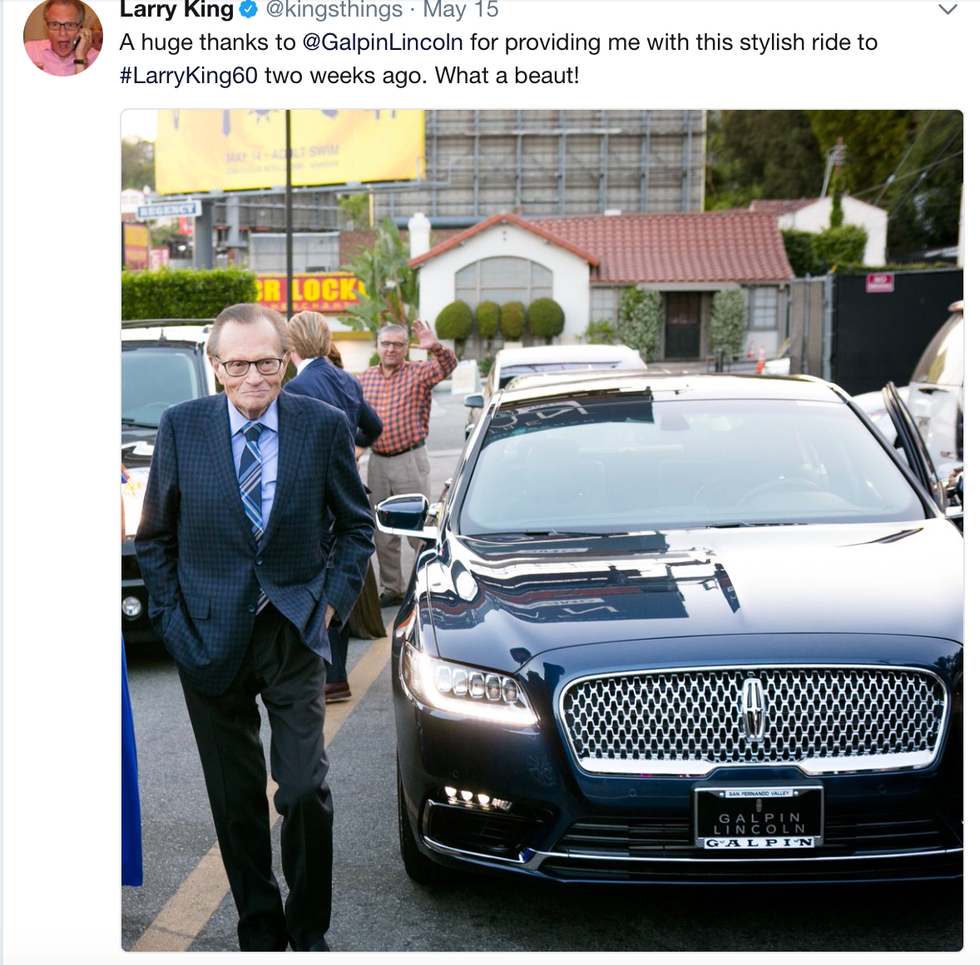 10) This tweet where Larry is walking beside a Lincoln as Matthew McConaughey probably drives it