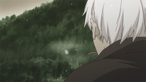 Mushishi is a great anime to watch anytime. You can pick up from anywhere in the show and not be too confused, because each episode is an independent story. Nothing really builds on on the next episode. Ginko, a traveling doctor, travels to different villages helping strange cases of illnesses or phenomena that he believes can only be caused by Mushi-- creatures that are half spirits in a sense. His telltale cigarette keeps the Mushi at bay, seeing as Ginko has a strong affinity for these spirit creatures.