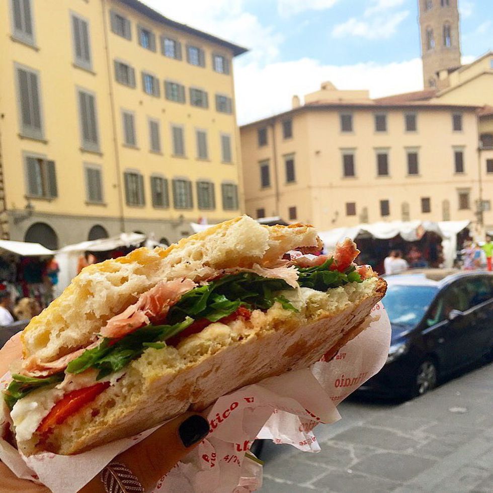 Another day, another panini. Get the famous All'Antico Vinaio panini. My personal favorite is the La Sumer panini covered in prosciutto, tomatoes, mozzarella, and arugula.