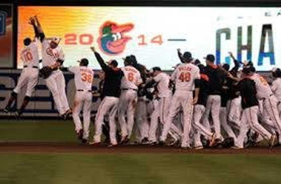 On Sept.16, 2014, the Orioles clinched their first American League division title in 17 years with an 8-2 win over the Toronto Blue Jays at Camden Yards. It was the first time the team was able to celebrate in Baltimore in front of a home crowd. After the usual champagne bath in the locker room the players went back out on the field to continue the celebration. Adam Jones pied Nick Markakis in the face and also gave a fan the honor of being smacked in the face by a real pie. The Orioles finished with a 96-66 record and took the division by 12 games.