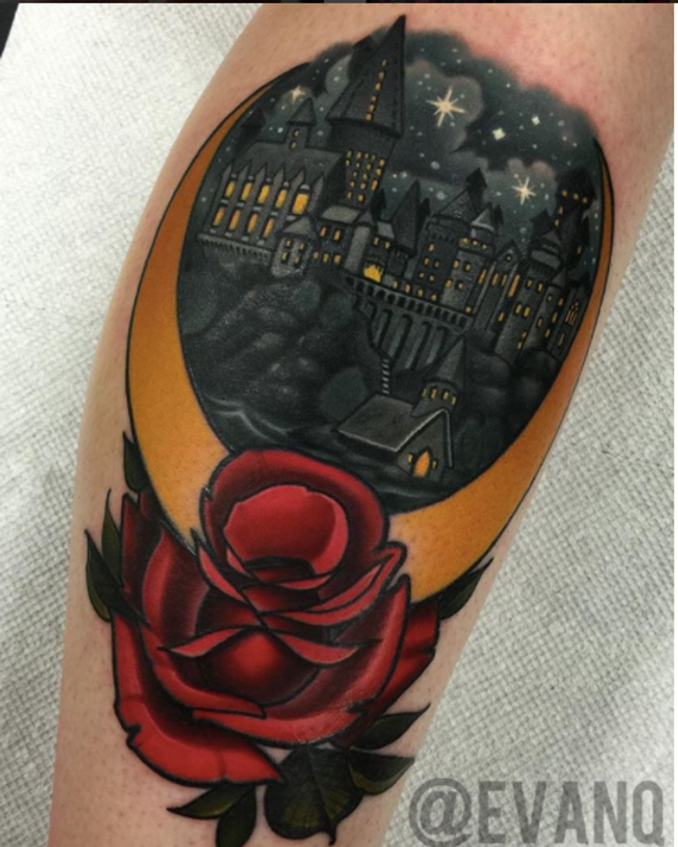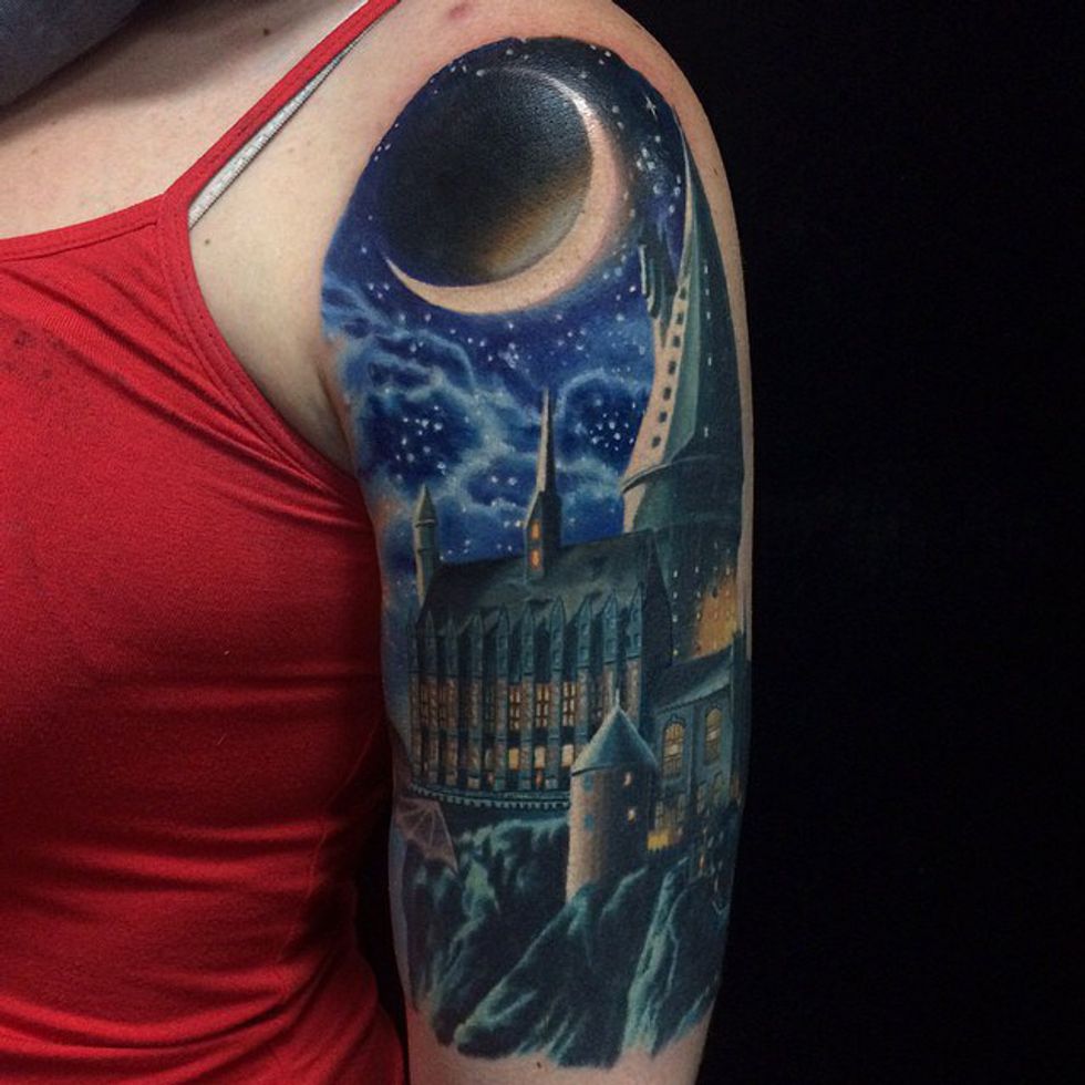 From hyper realistic to cartoonish, the Hogwarts Castle is a great choice for a Harry Potter tattoo. Despite its popular presence in the tattoo community, it is number ten on the list because it can be drawn in hundreds of styles.