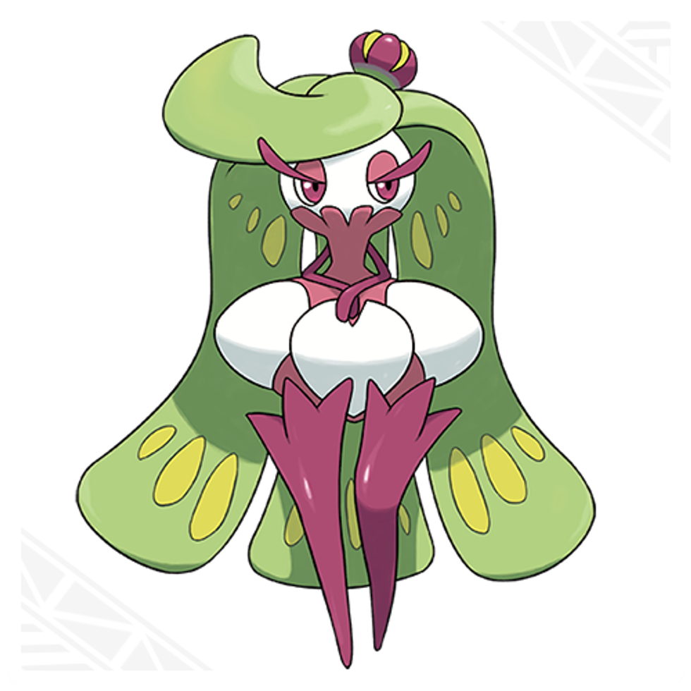 Lurantis is the beautiful pink bug Pokemon I have been waiting for. Okay, so Lurantis is actually just grass type, which confuses me because it’s literally a Preying Mantis. What can I say other than I have weak spot for pink Pokémon that look like they could strut down a catwalk and murder me at the same time.