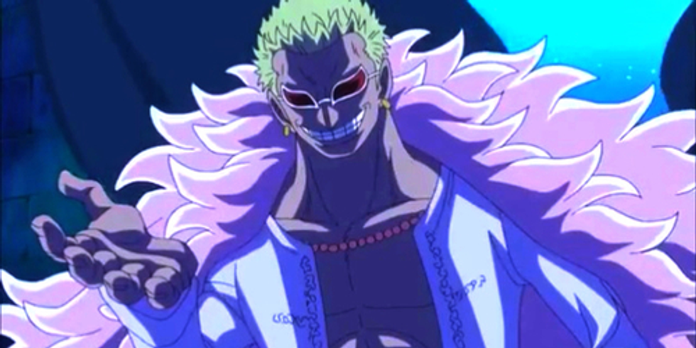 Doflamingo was introduced in the Skypeia arc, not as a true antagonist, but as a foreshadowed villain. He showed up again in the War of the Best to fight against Whitebeard’s crew. That being said, we don’t really get to see who Doflamingo really is until the Dressrosa arc, which is now in its final stages in the anime.