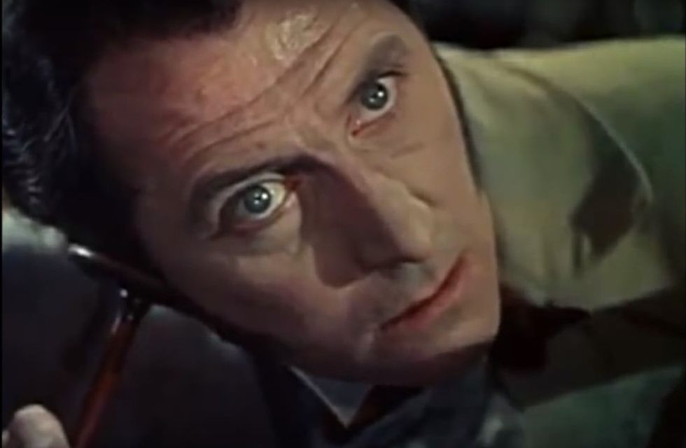 Here Cushing plays Van Helsing, a vampire hunter who's discovered a certain Eastern European count.