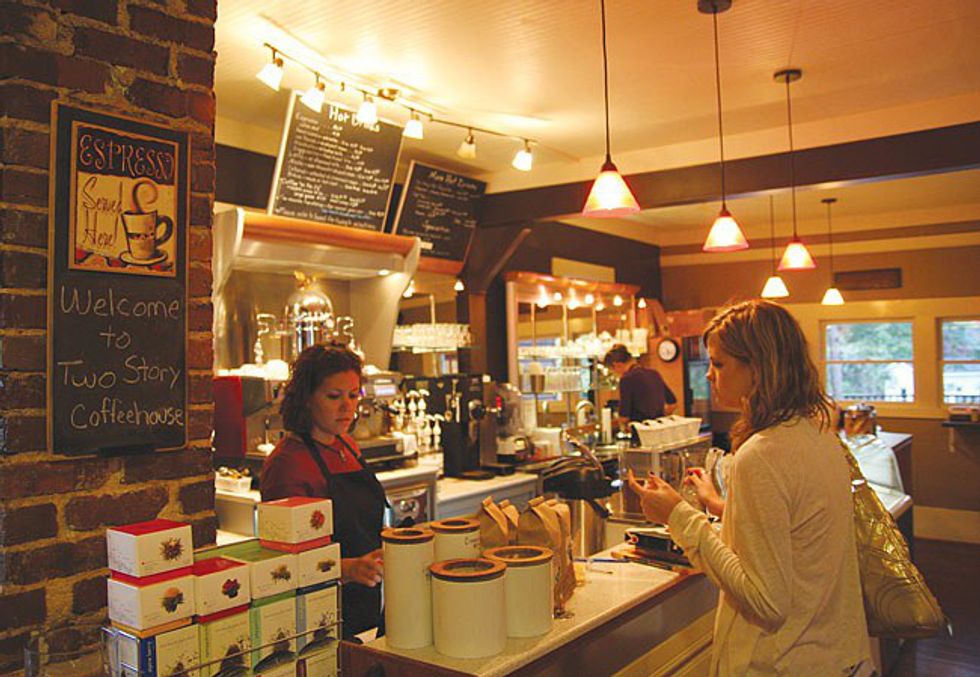 Two Story is a coffee shop in Five Points at 1680 S. Lumpkin St. Since it is located in an old house, there is seating available on the front porch, inside on the main floor, and on the second floor. The second floor is usually more quiet than the main floor if you need that kind of environment to get work done. They serve coffee and non-coffee drinks as well as a few snack options. Hours: Sun. - Thurs. 7:00 A.M. to 10:00 P.M. and Fri. and Sat. 7:00 A.M. to 9:00 P.M.