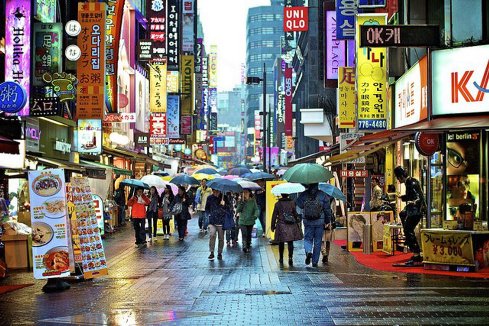 I'd like to travel to Seoul, Korea and walk through the busy streets at nighttime, eat delicious food from the street vendors, and also converse with the locals in their own language.