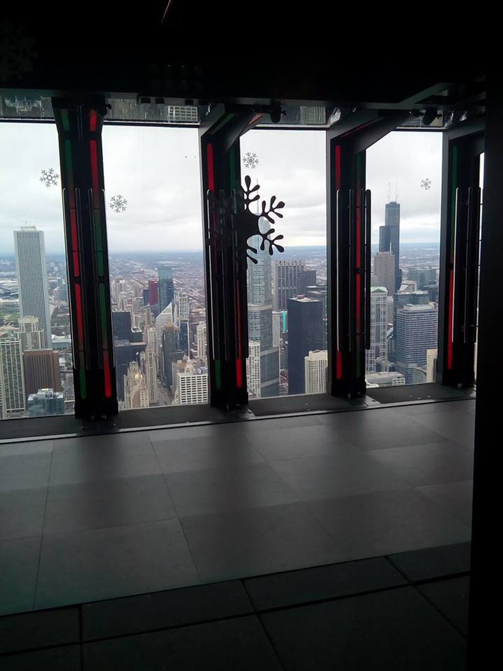 The Willis Tower stands 110 floors tall. This building offers the Sky Deck, which allows you to step out onto a glass box and see Chicago under your feet.