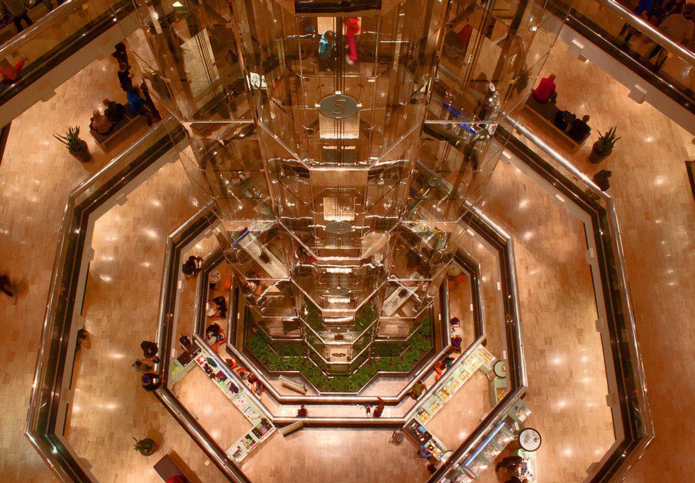 This building is a shopping center that offers not only stores, but food. If you're looking to spend money, this is the place.