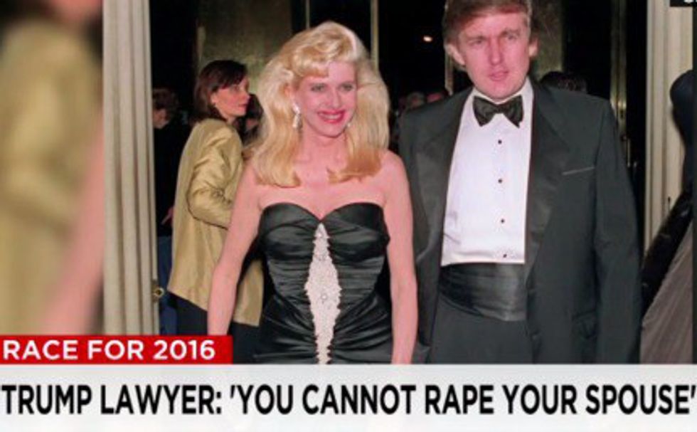 Back when this supporter of traditional marriage was married to his first wife, Ivana, there was a possible accusation of rape. Ivana later walked back her statements against Trump, including one where she admitted he made her feel violated during sex and that he raped her. Trump's lawyer also somehow forgot that "rape" is a part of the phrase "marital rape" and decided it wasn't illegal to force yourself on your spouse. Which is untrue. It's very illegal and if you do it, you should be in prison.
