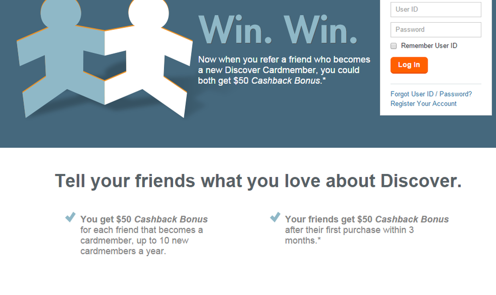 This is another eye-catching referral program. If you refer your friend for a Discover credit card and if your friend actually makes the credit card then you will get $50 as the referral reward. How cool is that?