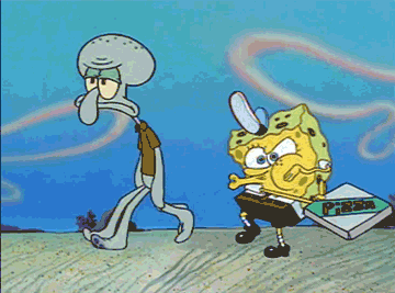 "It's not just a boulder, it's a rock." Honestly, I think we were all Squidward in this episode; sometimes Spongebob can be a little over the top, and that pizza always looks so good. Also, that customer was so rude, I would have thrown the pizza at him, too.