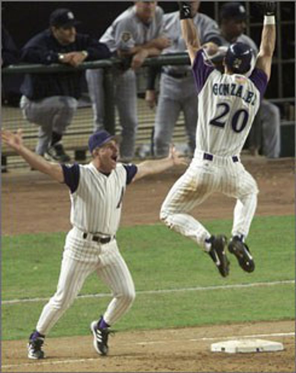 During Game 7 in the bottom of the 9th inning, Luis Gonzalez of the Diamondbacks hit a walk-off single to beat the almighty New York Yankees to claim the 2001 World Series. This was one of the biggest upsets in baseball as a small market team went on to beat a big market team to win the 2001 World Series.