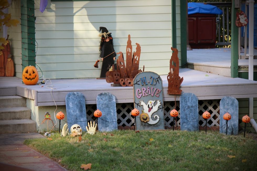 Nothing gets you in the spirit like some good decorations! While there's no need to go totally crazy, even a few carved pumpkins can get you in a spooky mood. But if you want to go farther than that, any dollar store has cheap decorations you can use. A few cobwebs on the banisters of the steps, a few gravestones in the front yard, pumpkins and you're ready to go!
