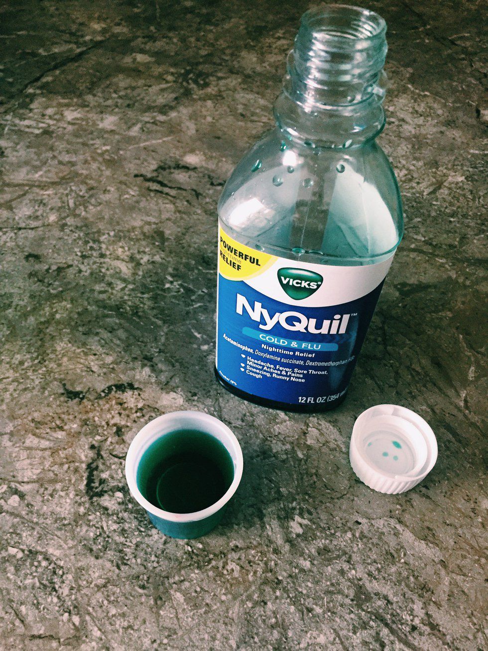 Nyquil and Dayquil for the win. God bless the soul who invented these two medicines. Not only does the taste remind you of childhood when your mom would force a spoon down your throat while having a cracker ready for you to chase it with, but it also soothes the back of your throat. Alongside of the quil brothers, Emergen-C packets are a lifesaver. Those packets that you pour into your water are also like taking shots because the taste isn't all that great but the results are effective.