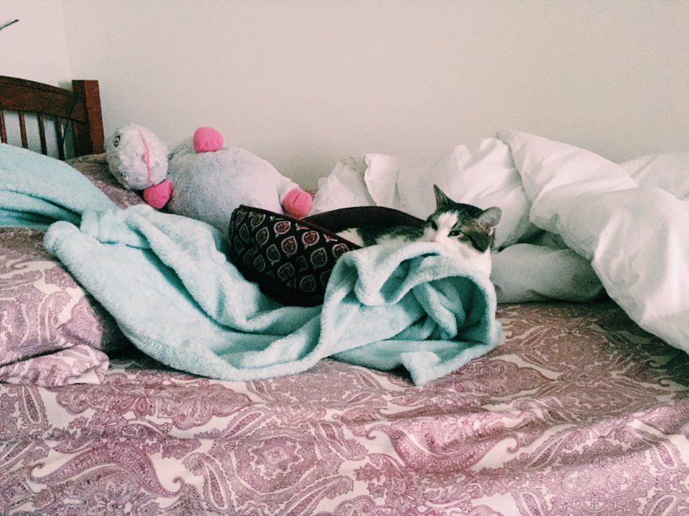 When I'm sick, the only part of my body that isn't covered by blankies is my eyes. When you're sick, you want to be warm and nest yourself in the bed or couch like a baby bird. Usually you might use like one blanket to cozy up on the couch but, when you're sick the minimum blankie count is 3.