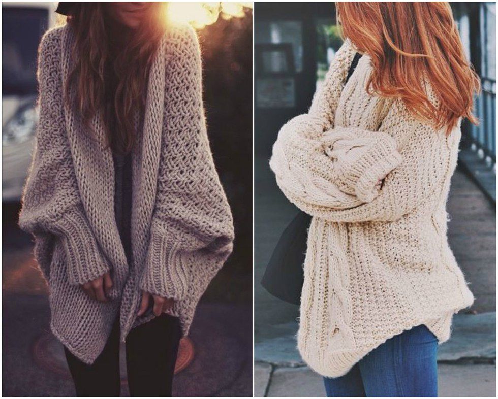 Nothing is more comfortable that a huge sweater or cardigan. Whether you're in a big t-shirt and leggings headed to class or a cute, casual outfit going out to dinner, throw it on and go.