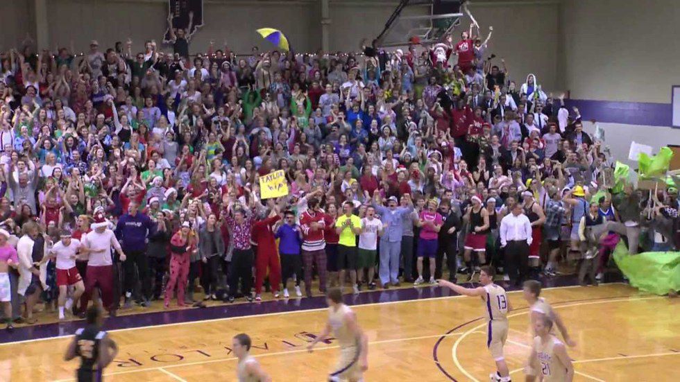 The basketball game gains national media attention from millions worldwide. Students pack the gym two hours early in odd costumes. They remain silent until the tenth point. After the team scores double digits, the arena explodes.