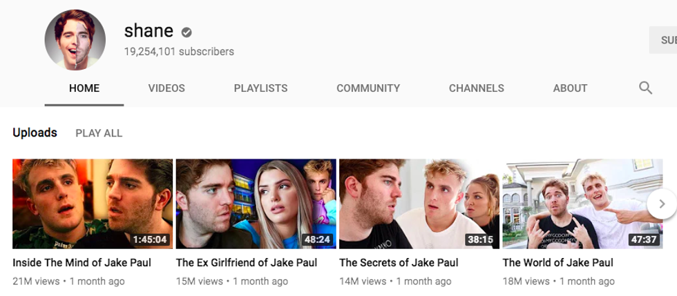Now. I know what some of you are going to say. I do. But I don't stan Shane. His work, while improved, has proven to be controversial, what with him giving more of a voice to an attention-seeking rich kid than the problems that he causes for others. *cough cough* Not naming any names. His videos have only recently improved in content. A lot...A LOT... of his videos have the disgusting yellow background and some "outrageous" thumbnail with Shane trying celebrity favorite foods or making slime with random things. That is not the content I watch. I appreciate his videos where he and his whole gang of Ryland, Garrett, Morgan, and Andrew explore haunted ships and hotels. And his whole "series" videos are entertaining at face value, only good for wasting time when you don't want to work on your literature review due in two nights...Shane is entertaining to watch because he's just so weird- more than most of us. His ability to not care about the jokes he makes is a bit cringey, but it works for him. The fact that he's in his 30s is honestly amusing because Youtube has morphed into this weird fame platform for teens, but it is admirable that he has stayed committed to improving the things he puts out into the world.