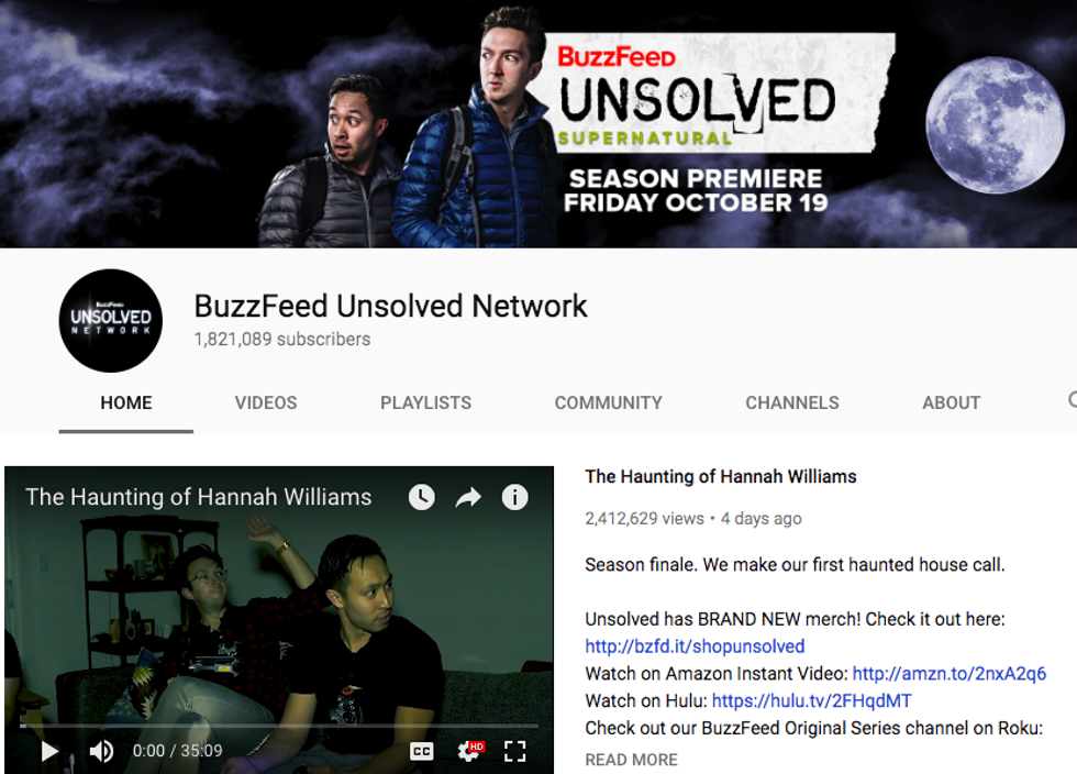 I really enjoy horror content. A lot of movies made kind of irritate me though because all of the pressure to scare the audience is placed on jumpscares. I appreciate A Quiet Place and Hereditary though. Both surprising as far as plot goes, but the latter is definitely more scarring. Would not recommend unless you want to permanently change your brain. But, as a college student, I do not have the time to invest in a whole movie. So instead, I satisfy my spooky needs with these two nerds above- Ryan Bergara and Shane Madej. Buzzfeed is sometimes overbearing, but Buzzfeed Unsolved is perfect. That's where all the funding for Buzzfeed should be going. The pair spend their time investigating true crime, supernatural, and conspiracy theories. Ryan's a believer. Shane isn't. That's where the comedy comes in. And that's I need to get through the week...every week.