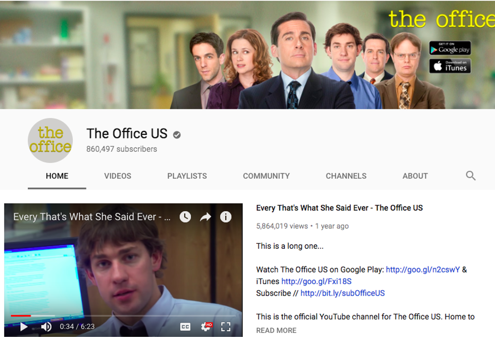 I mean...this channel posts compilations of character moments from The Office. I know the TV show isn't for everyone, but honestly, it's an acquired taste. You almost have to watch the series all the way through TWICE to appreciate the weird humor. And even though episodes are only about 25 minutes, I sometimes just need to watch "Every That's What She Said Ever." The end.