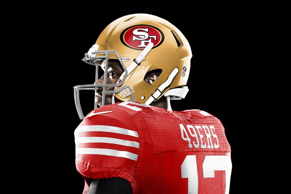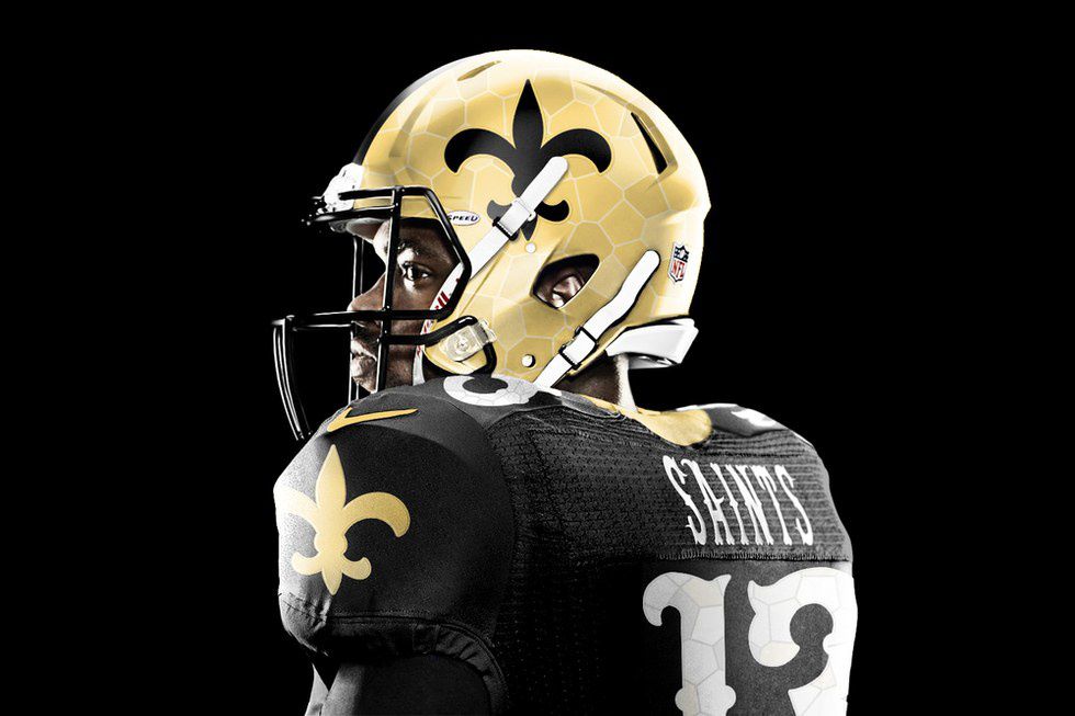 Before you start judging, just know that I do not condone the mustardy gold color of the jersey. I will always be a fan of the pure gold helmets. But the incorporation of the mascot throughout the uniform, particularly in the helmet, makes that design my favorite helmet that has ever existed in the NFL.