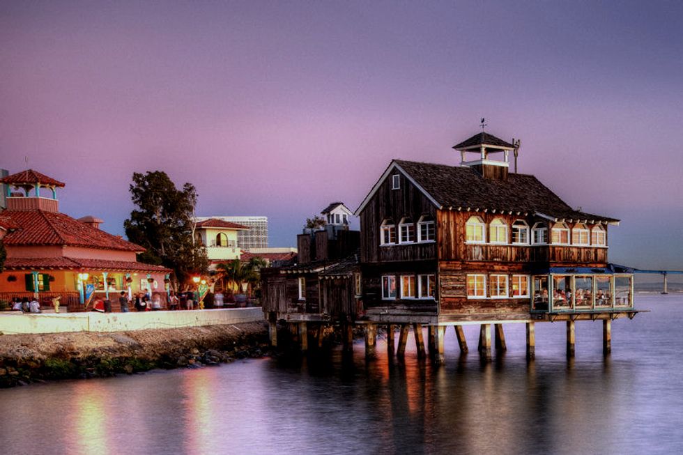 Stretching across two miles of the Pacific Coast Highway, Del Mar Village is a charming seaside village in San Diego, offering fine dining, shopping, and a world-famous thoroughbred racetrack. If you're looking for the climactic seaside dining experience, be sure to have dinner at Poseidon Restaurant.