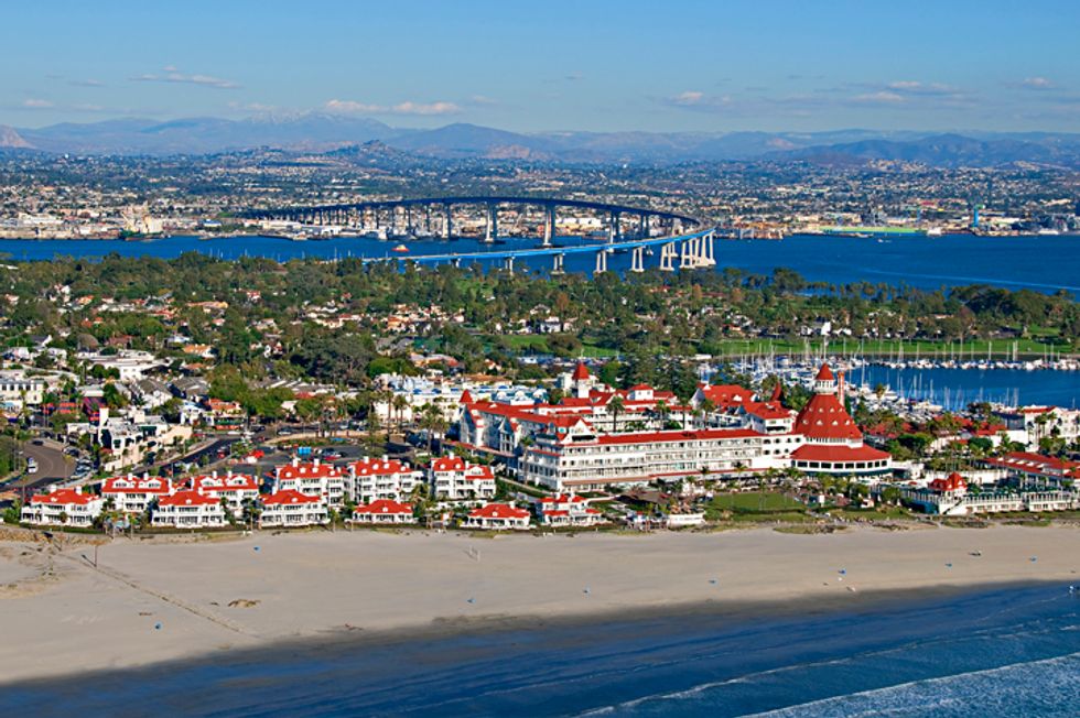 Saving the best for last, Coronado Island, or the "crowned island," is located directly across from downtown San Diego, connected to the city by the Coronado bridge. The island is home to the famous Hotel Del Coronado, a downtown filled with restaurants and shops, and two live theater companies. Coronado is also ranked as one of the best beaches in America. One of the most popular activities in Coronado is biking, and many visitors bike around the island for the day, taking in the sights and the refreshing sea air.