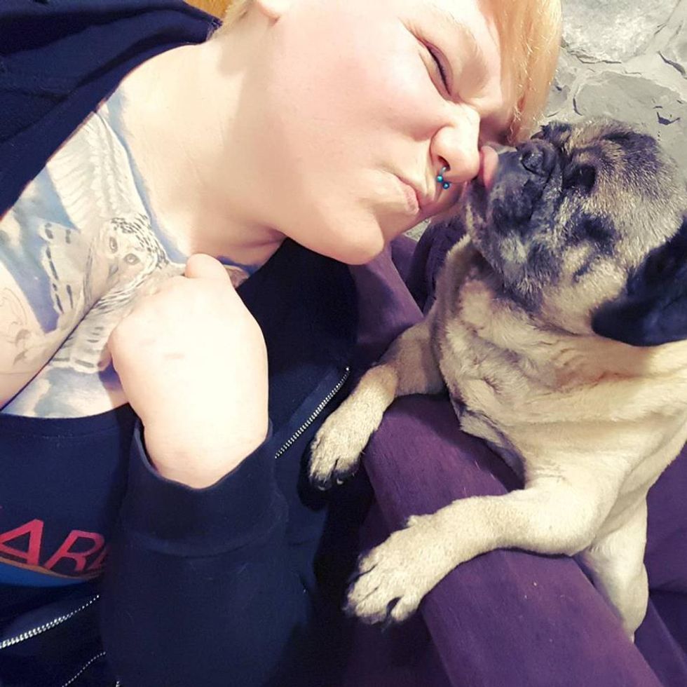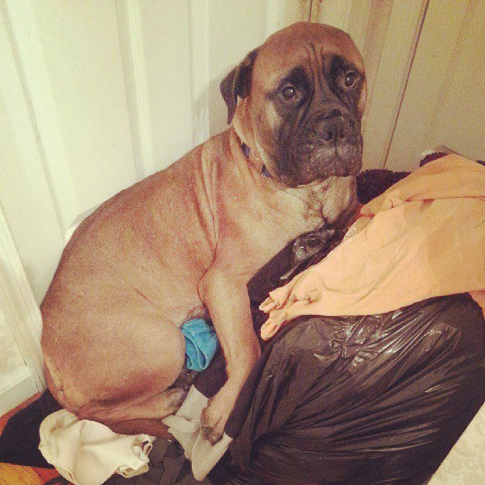 This Queen Bee right here is Dandy, or Dandy doo to her family or Tubby to anyone really. She is the queen of the house. If you sit down on the sofa and there is room for her (even if there isn't) she is right there on top of you or next to you trying to make you pet her and love her. She is a sweetheart, a big old bug. Her and Thor had the most adorable puppies some of the cutest nuggets I've ever seen.