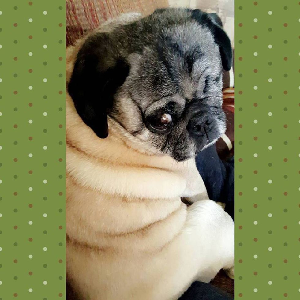 This is Rocky he is my pug. He is up there in age and now blind, but I love him so much and I still think he is the cutest pug in the whole world.