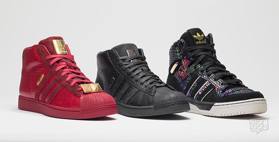 Big Sean is another artist signed to Adidas Originals. The Detroit rapper has released 3 shoes since he signed with Adidas, and they're pictured above. The red "Detroit Player" was a tough shoe to cop. It was only released to stores in his hometown of Detroit at select retailers. His "All Black" and "Metro Attitude" that followed were also exclusive. Although these shoes came out years ago, Big Sean and Adidas have both been teasing a new collaboration on Twitter lately. I wonder what they're up to...