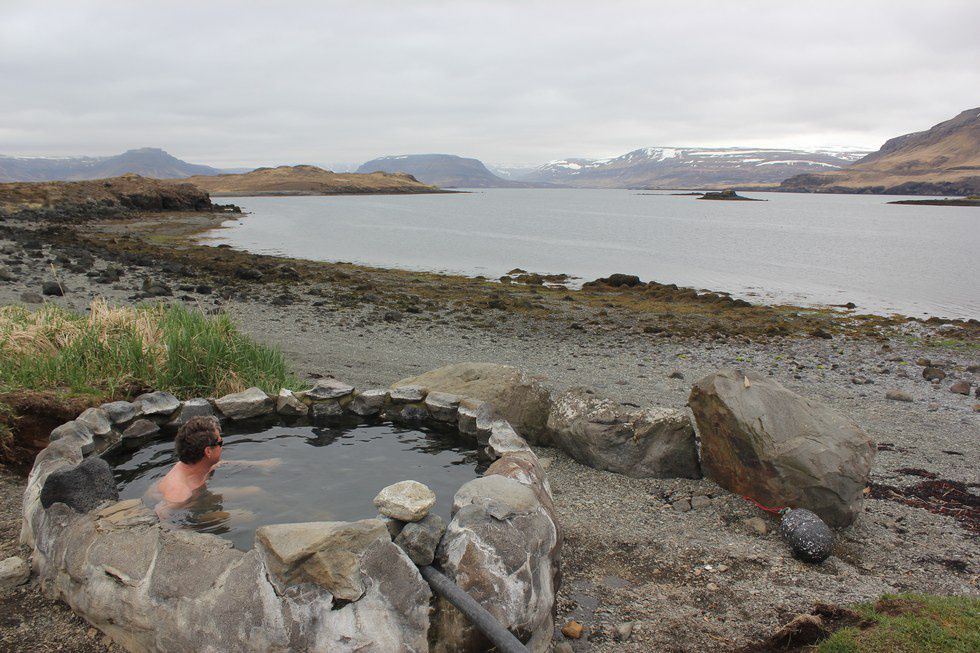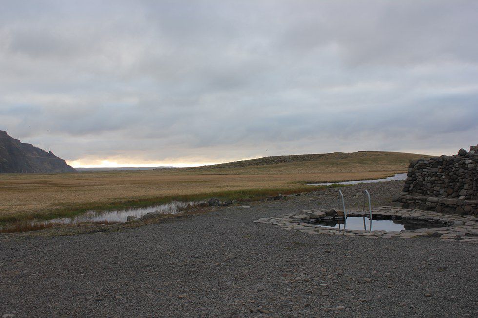 If you like sea-glass beaches and incredible views, then you'll love this little hot pool. It is slightly colder than others due to the wind blowing off the ocean, but it has such an amazing view of the mountains across the bay. There is no name for it, but it is in Hvalfjörður near Hvammsvík by the red houses on the beach. Check out Hot Pot Iceland for the Geo-location!