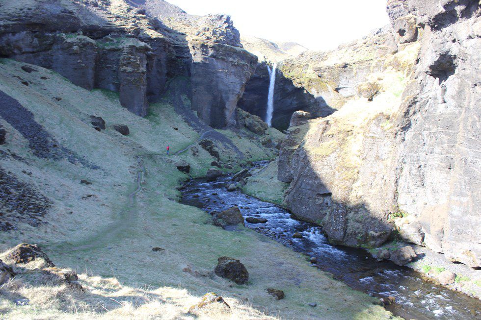 Near the Skógafoss waterfall, there is a secret and lesser known waterfall that is absolutely stunning. It's about a 20-minute walk from behind the historic folklore museum which is to the right of Skógafoss. You hop the fence on the path behind it and follow it through a sheep pasture and up a small canyon until you reach the fall.